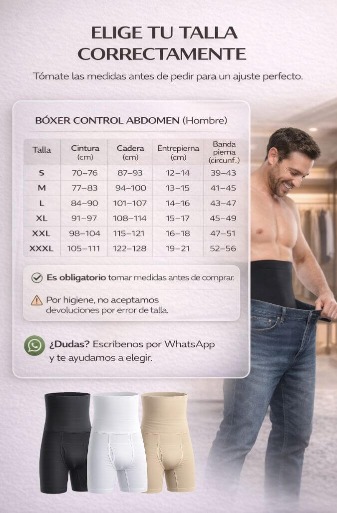 Te recomendamos guiarte por la tabla de tallas según tu cintura y cadera. Si estás entre dos tallas, elige la más grande para mayor comodidad.