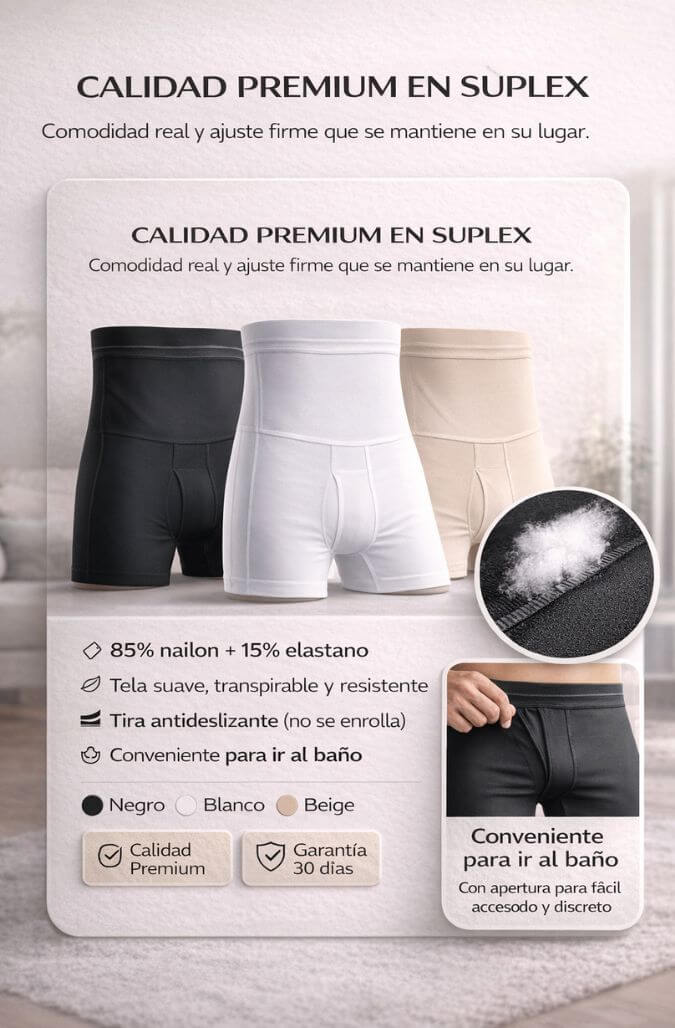 Ofrece una compresión media a alta en la zona abdominal, ideal para moldear la figura y brindar soporte sin incomodidad.