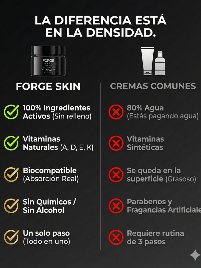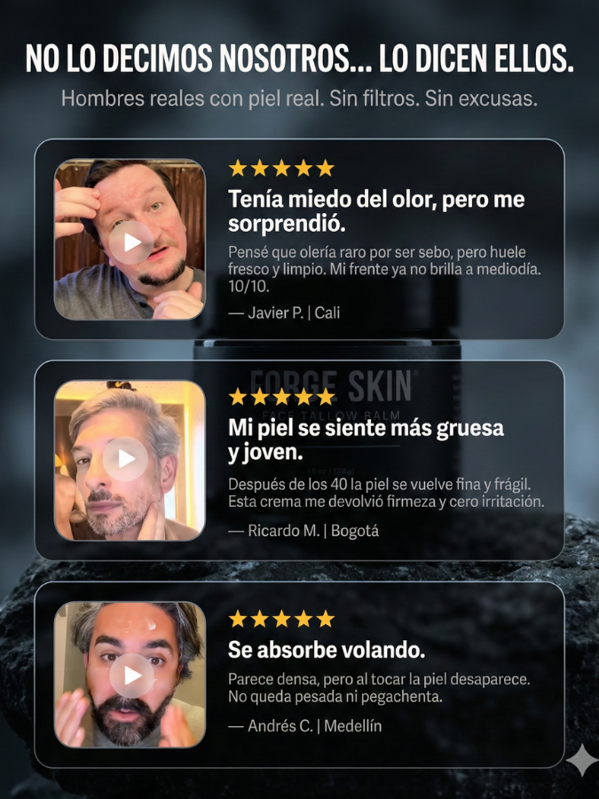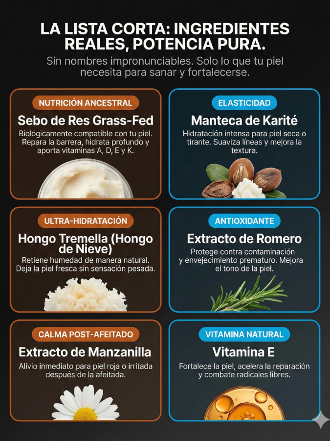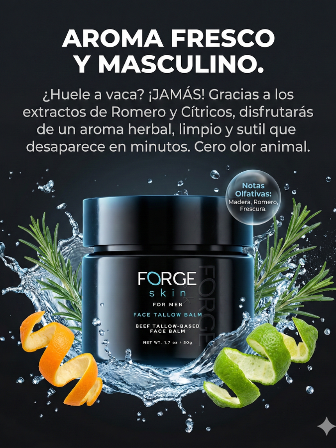 Sí. Forge Skin utiliza Tallow Grass-Fed, Manteca de Karité, Extracto de Romero y Manzanilla. Es una fórmula limpia: cero parabenos, cero alcoholes, cero fragancias sintéticas y cero rellenos químicos.